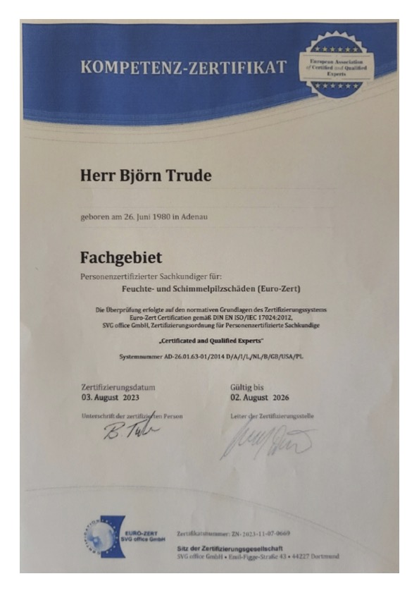Zertifizierter Baumanager und Sachkundiger für Feuchte- & Schimmelschäden